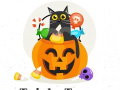 万圣节矢量素材 南瓜头可爱里的黑猫